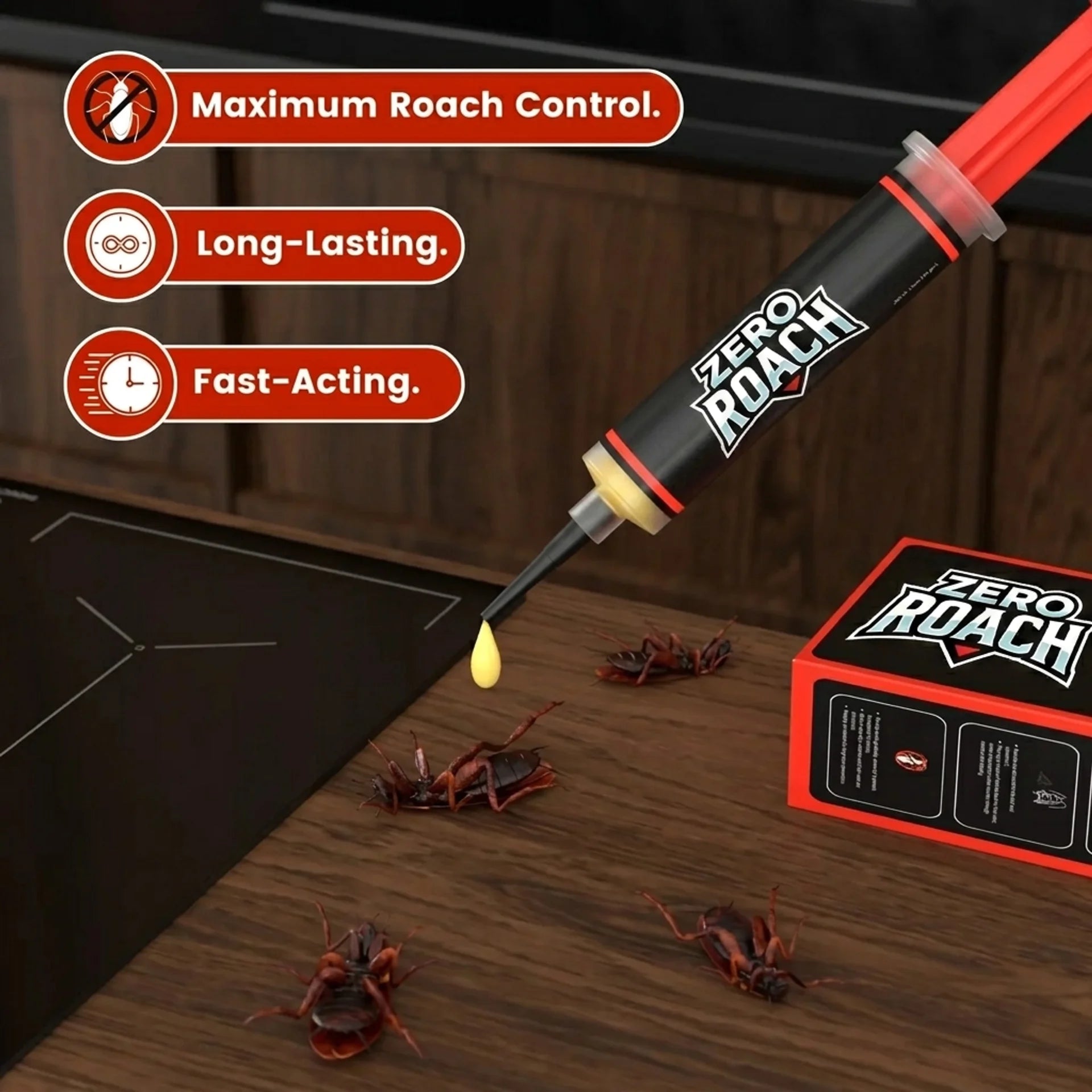 Zero Roach Gel Bait works on all types of cockroaches including the American, Asian and German cockroach species.